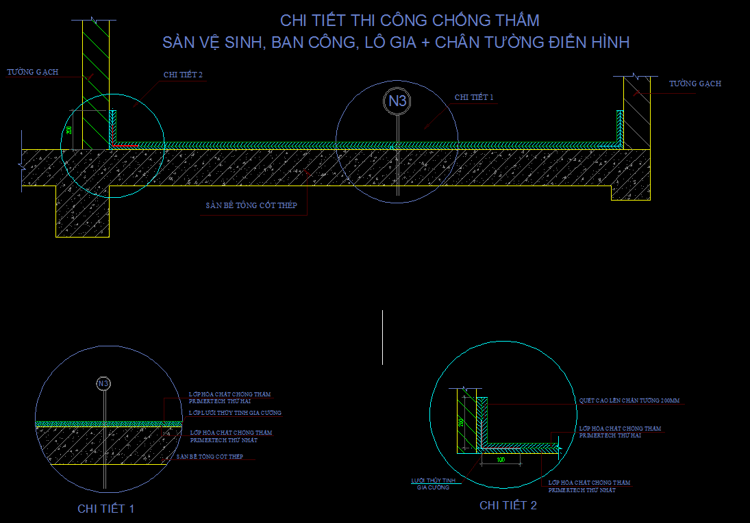 CHỐNG THẤM KHU VỆ SINH, RÃNH THU NƯỚC, SENO BẰNG PHƯƠNG PHÁP QUÉT HÓA CHẤT( Dùng hóa chất chống thấm gốc Bitum Insumat Primertech )