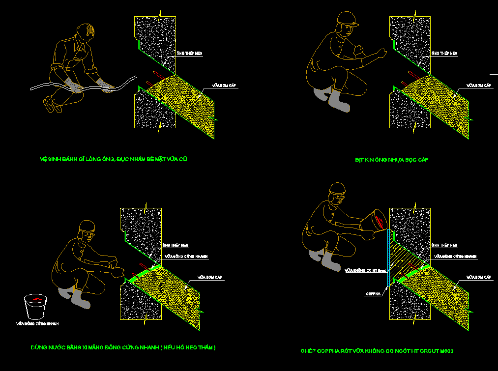 4. Rót vữa HT Grout contruction M600 vào hố đã ghép cốp pha